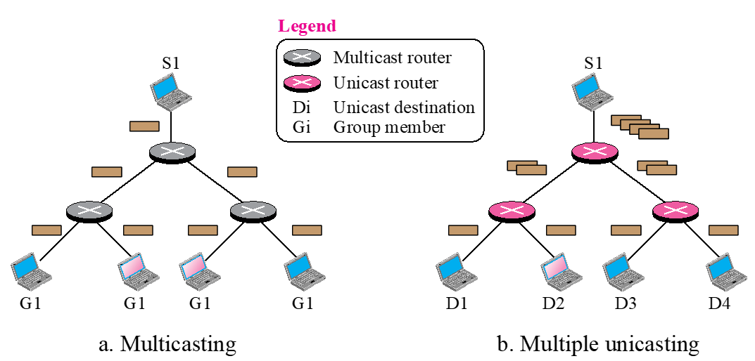 - 모든 host에 데이터를 전송해야할때 그냥 TCP나 UDP를 쓰는 것보다 트래픽 양 ↓